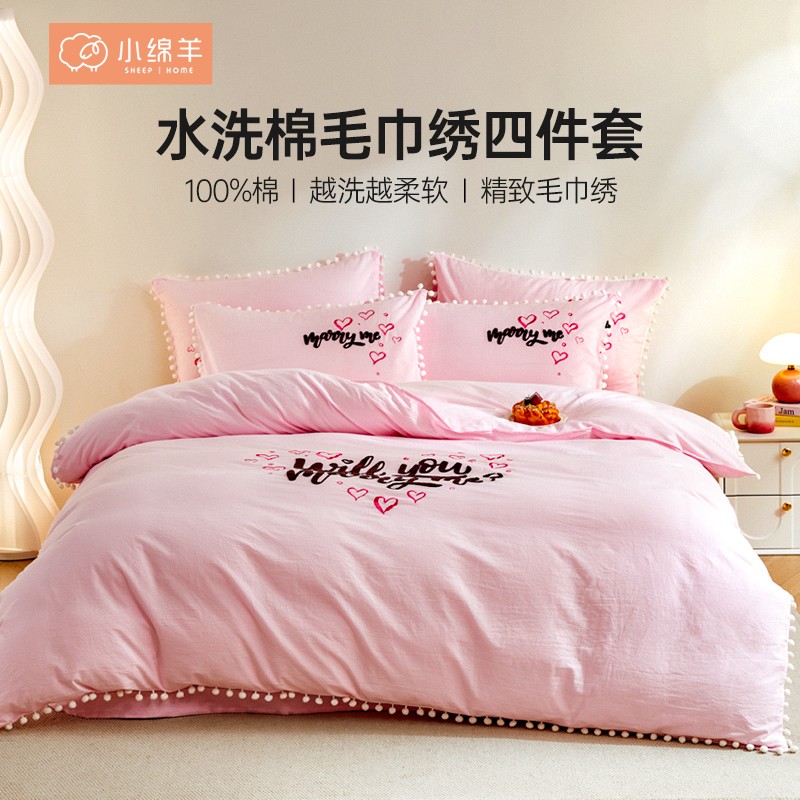 小绵羊水洗棉绣花四件套