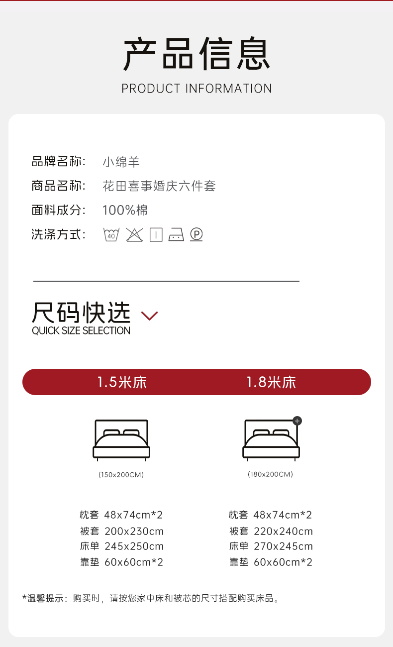 被套:200*230 床单:245*250 枕套:48*74*2 靠垫:60*60*2
