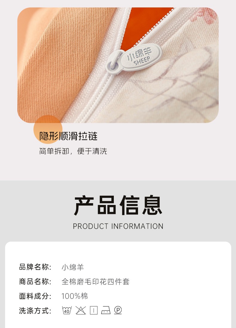 小绵羊全棉磨毛印花四件套