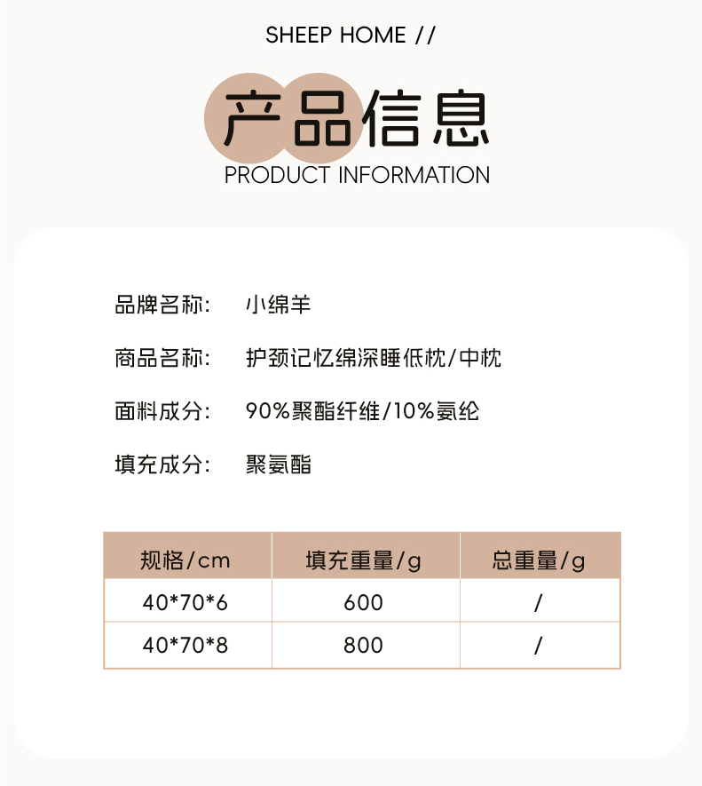40x70x6cm 填充重量600g 40x70x8cm 填充重量800g